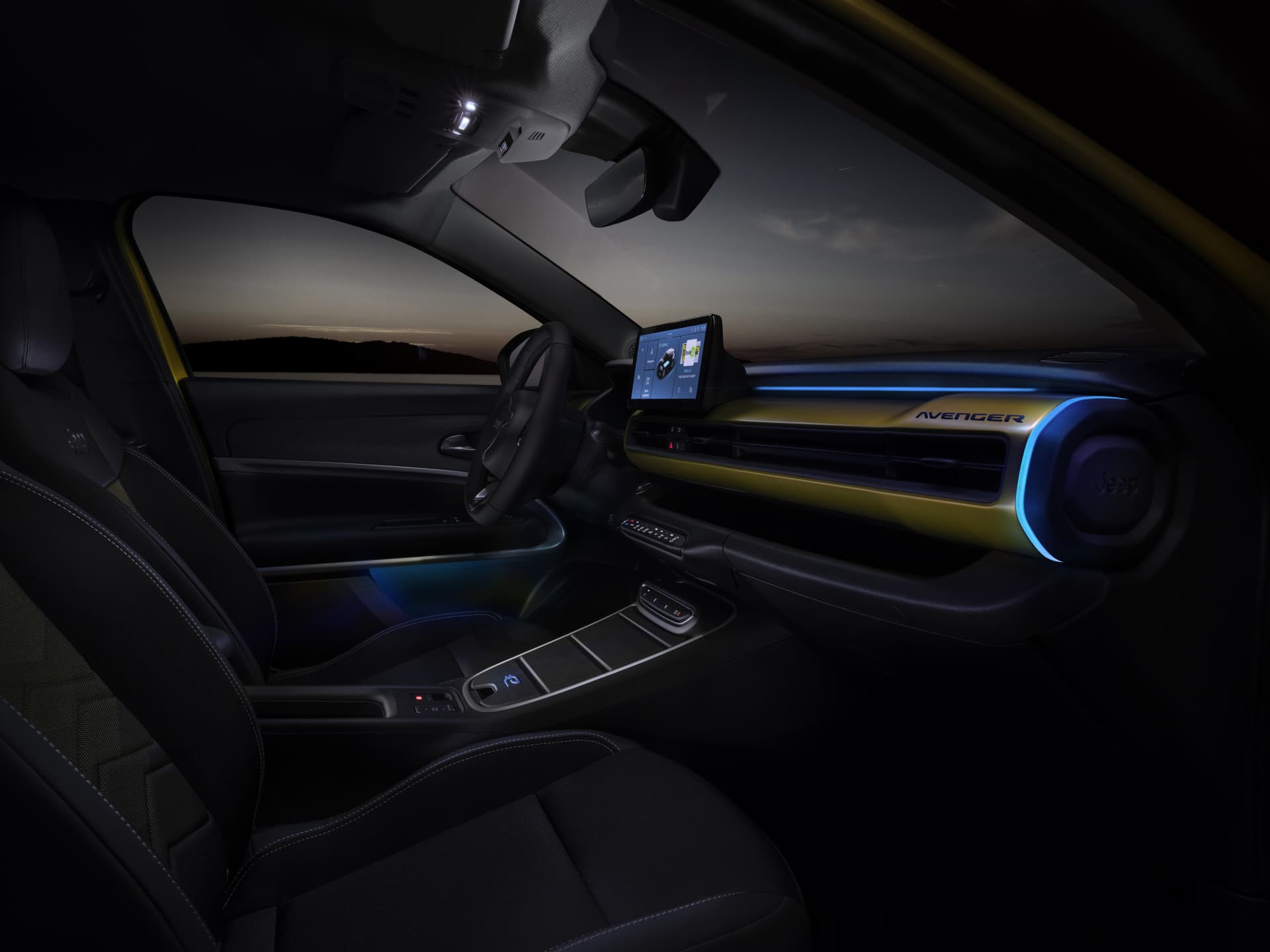 Jaunā Avenger salons nodrošina nepārspējamu stilu un augstākās kvalitātes komfortu, pateicoties LED daudzkrāsu noskaņas apgaismojumam*.