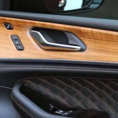 Īsti materiāli, kas sajaukti ar tradicionālo meistarību, rada kontrastu ar izstādīto tehnoloģiju, lai radītu īstu luksusa gaisotni. Visā kabīnes vadības paneļa virsmā īsta koka ieliktņi izceļ šīs versijas stilu.