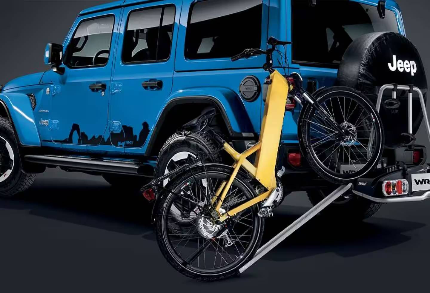 Neierobežojiet savu piedzīvojumu! Dodieties ar savu Wrangler, kur vien vēlaties, un ņemiet līdzi arī savu velosipēdu. Izmantojot velosipēdu turētāju, vienlaikus varat pārvadāt 2 velosipēdus.