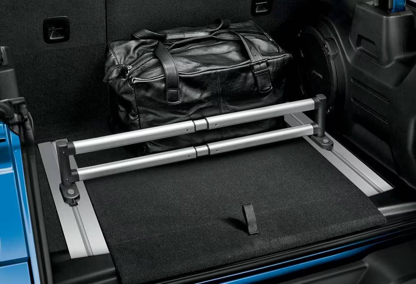 Bagāžas nodalījuma daudzpusīgā platforma sastāv no platformas ar 2 metāla sliedēm un teleskopiska stieņa. Šis risinājums ļauj sadalīt bagāžas nodalījuma telpu un droši noturēt visas mantas un lietas savās vietās.
