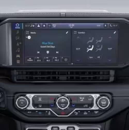 Jaunā Wrangler Sahara iepazīstina ar jaunās paaudzes 12.3" skārienekrāna Uconnect™ nav informācijas un izklaides sistēmu, kas apvieno pilnu navigācijas sistēmu un maksimālo mobilo savienojumu līmeni, pateicoties Apple CarPlay® un Android Auto™ funkcijām.